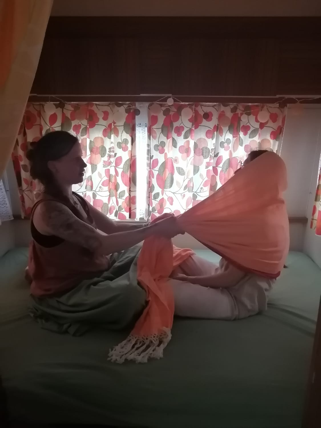 Ce soin se vit plus qu’il ne se décrit, cependant je peux saluer la diversité des moments proposés : bain de pieds, massage, resserage de tout le corps, cataplasme pour l'utérus,... Mais je peux dire que chaque geste, chaque étape, chaque vibration de sa voix chantée m’a touchée profondément. Elle a su s’adapter à mon rythme et au temps dont je disposais, avec une présence attentive et bienveillante.